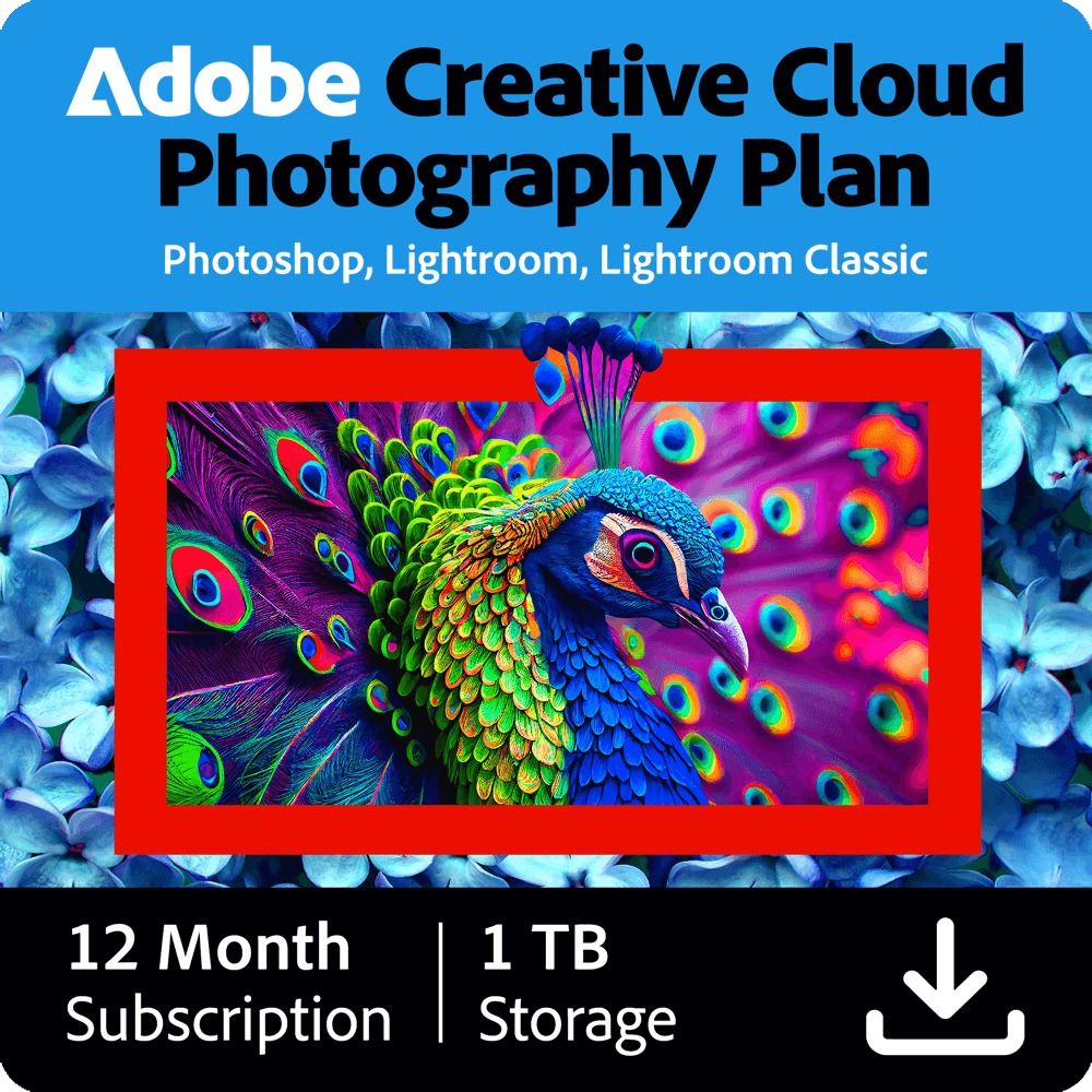 Adobe Creative Cloud Photography Plan 1 TB - Upravujte obrázky poháňané AI pomocou Lightroomu, Photoshopu a cloudového úložiska.